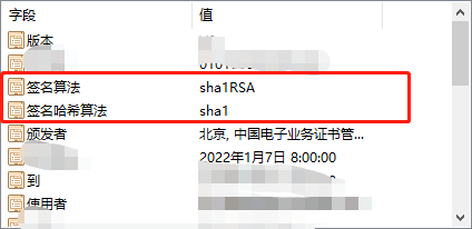 根据海关相关的指导文件,7月之后企业申请的ukey 统一采用国密算法,而不是之前的sha1了。具体如何辨别,可以导出证书内容 ,另存为cer后,双击打开证书,点击详情查看。